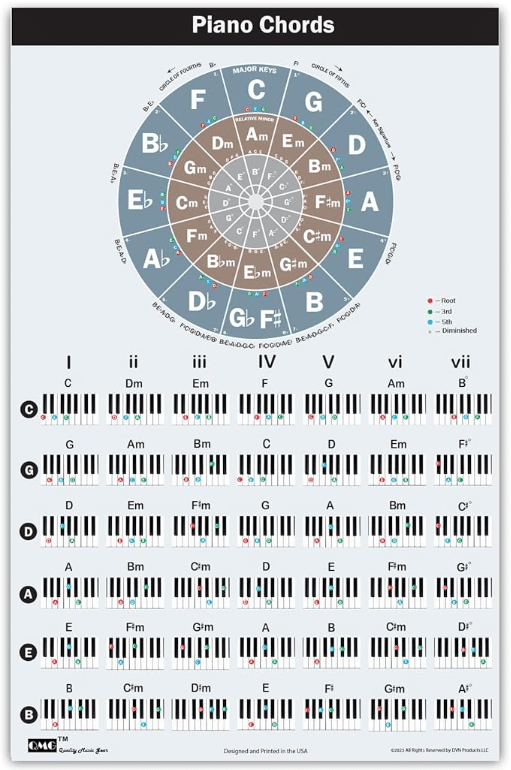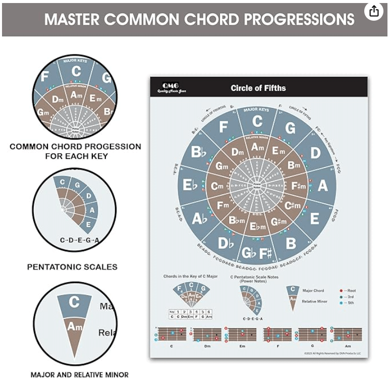 • ✅ CHORD CHART BUNDLE: This Guitar Cheatsheets Bundle makes chord learning simple and effective. It even includes a Circle of Fifths Chart on the back for deeper music theory insights and creative chord progressions.
