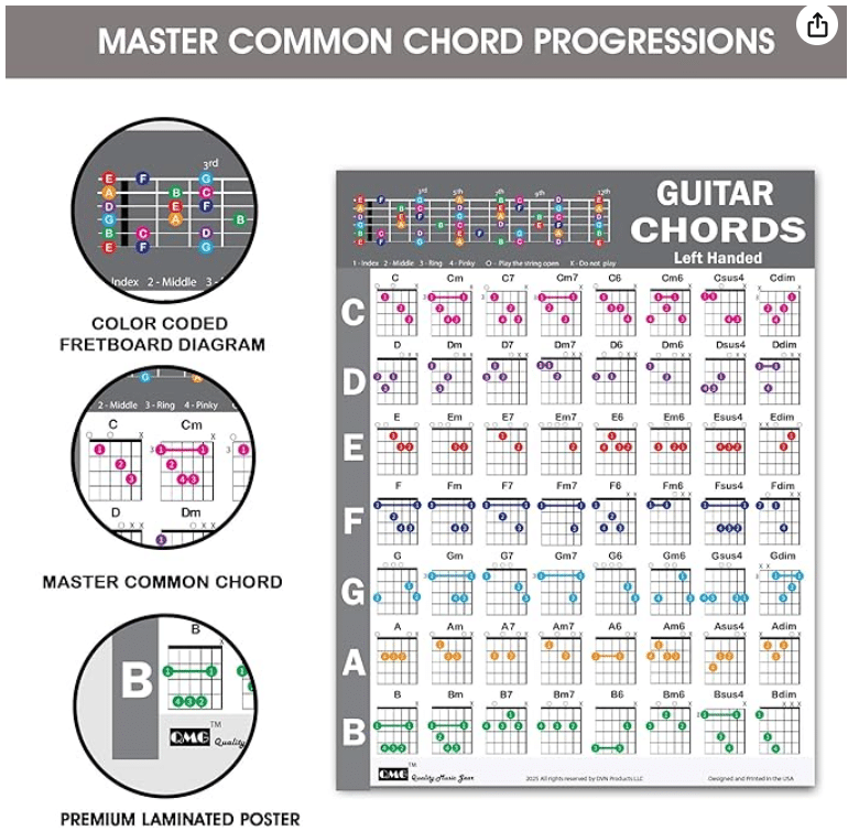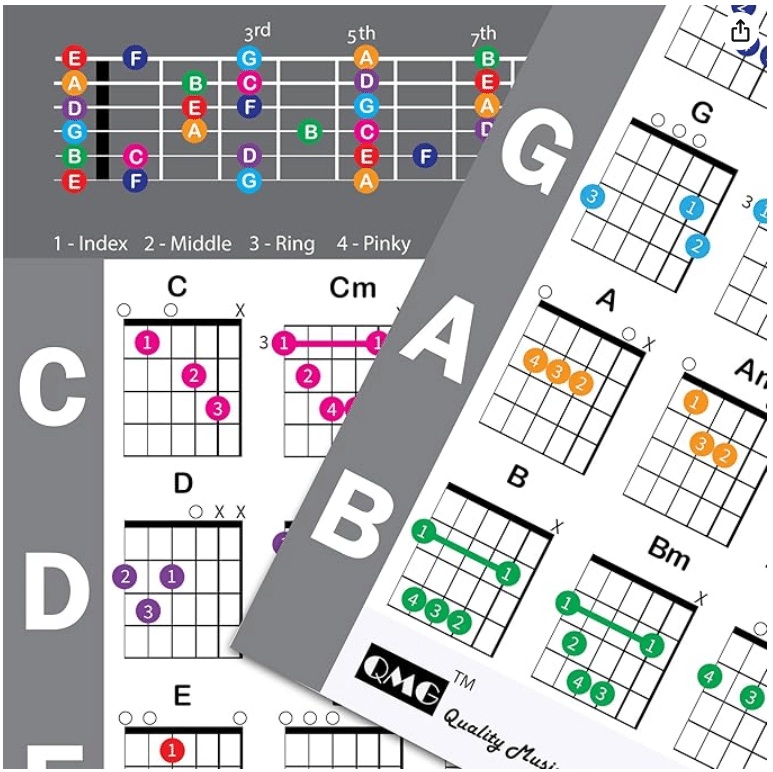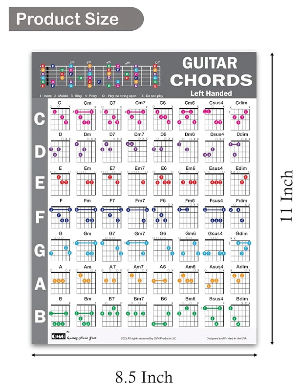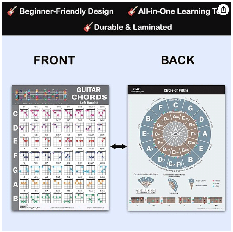• ✅ PREMIUM QUALITY: The Guitar Chords Chart for Music Theory is made from high-quality laminated material for long-lasting use. Durable and reliable, it’s a valuable resource for both beginners and experienced guitarists.